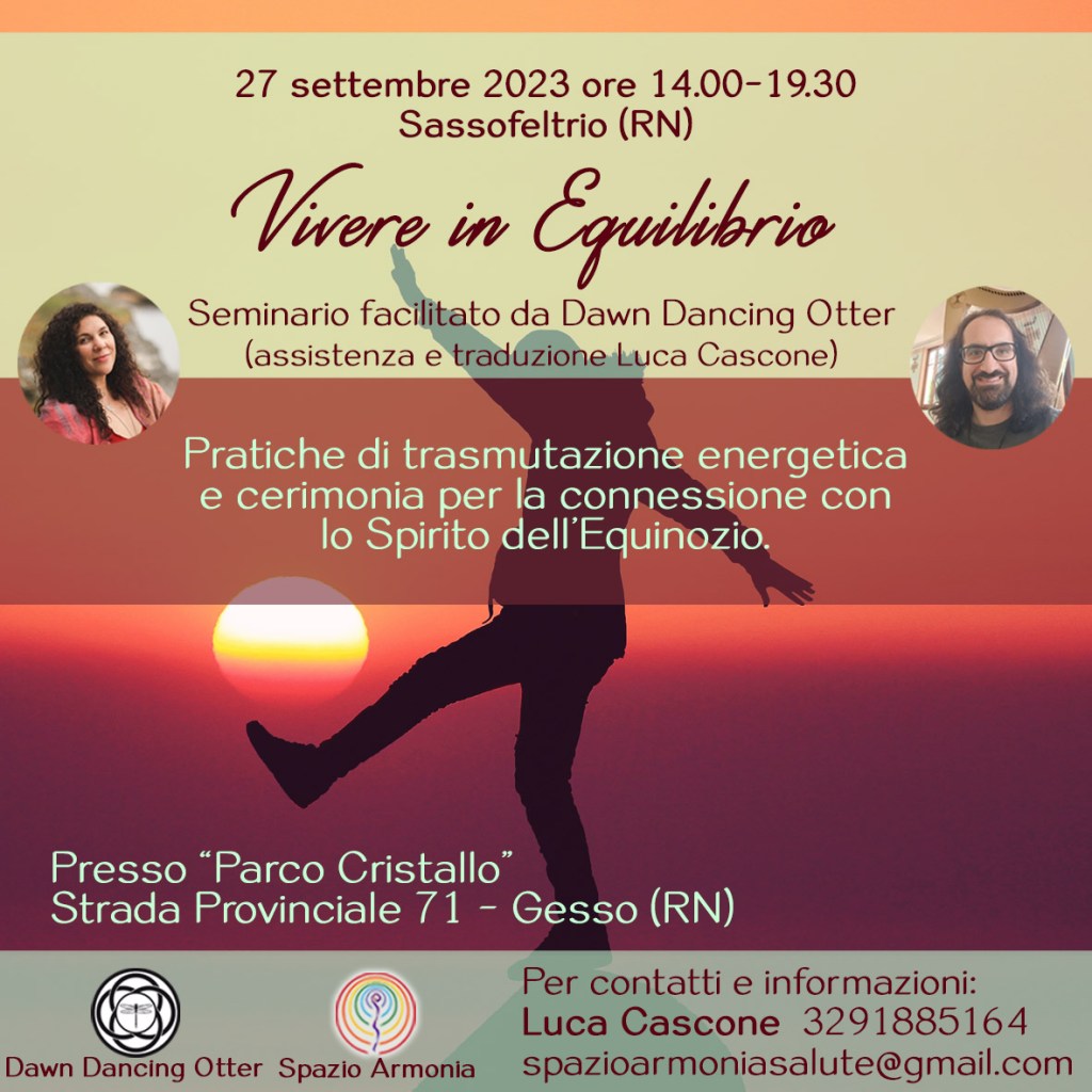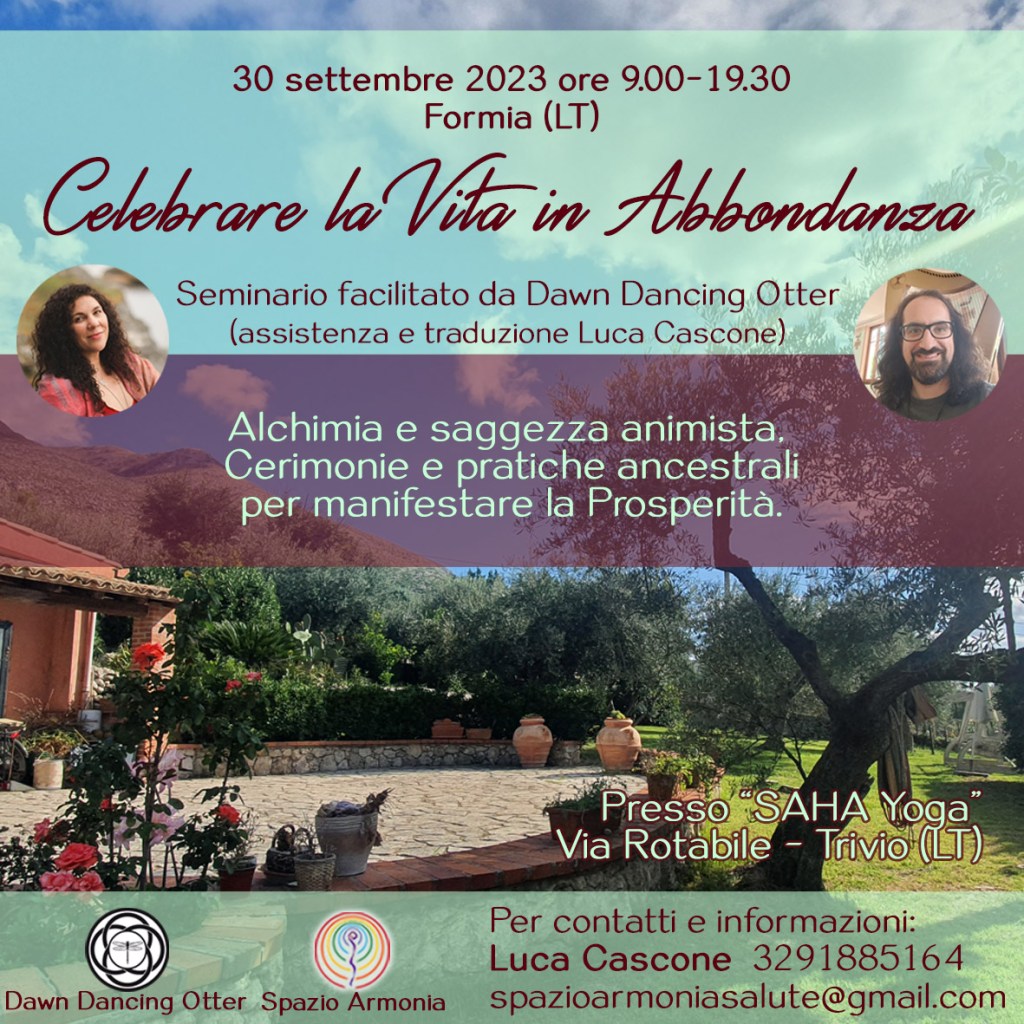La saggezza dei popoli antichi ci suggerisce come vivere e celebrare l’abbondanza della Vita e, grazie al nuovo ciclo di insegnamenti facilitato da Dawn Dancing Otter, potremo apprendere a portarla nel nostro quotidiano.